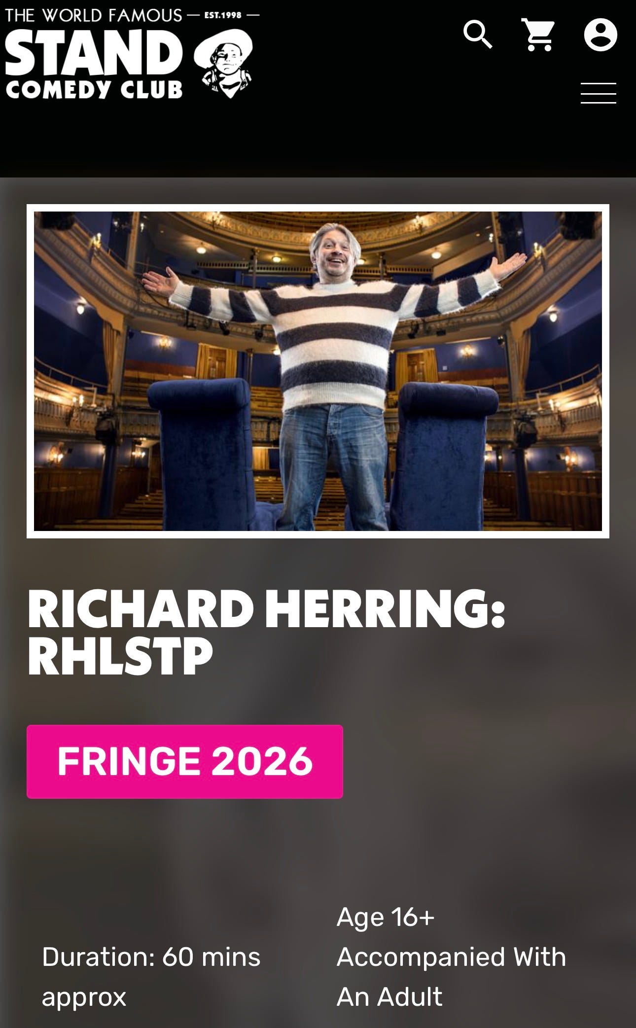 Tickets are now available for my 2026 Edinburgh Fringe run of RHLSTP (I will also be doing a couple of extra gigs at another venue in the early evening - more news soon). Book here.