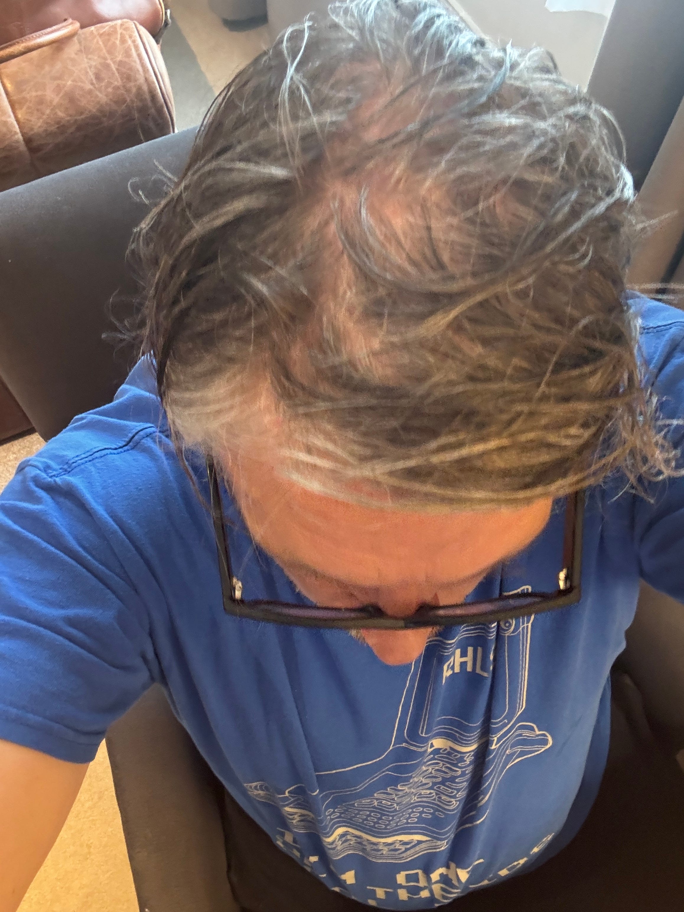 For now there's still enough hair there for me to pretend I'm OK and hopefully I will die before the baldness encroaches too much. I want my skellington to have long hair on it so it scares any kids who dig me up looking for the treasure I am going to be buried with. Also I need to pretend I am not as old as I am. Please let me pretend.