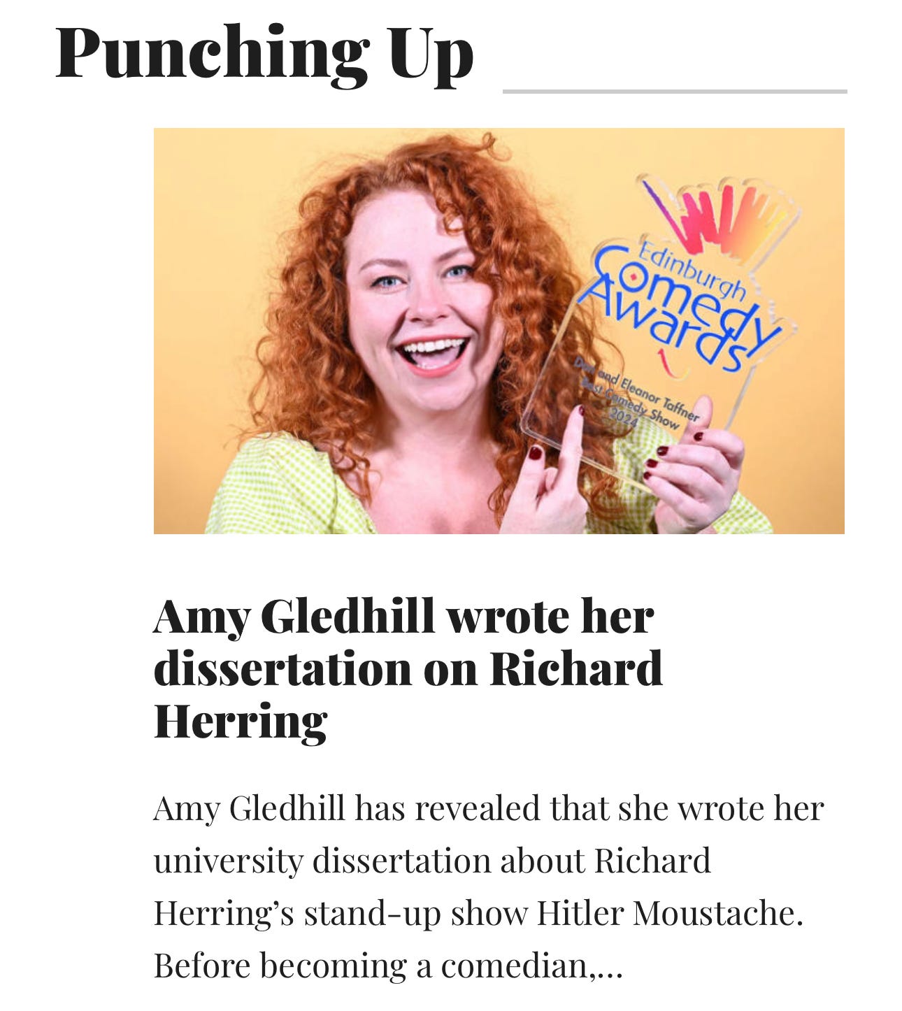 I also got my third Chortle mention of the year in this piece about the lovely Amy Gledhill. Is my past work about to get the acclaim it deserves? When will someone write a dissertation about stone clearing?