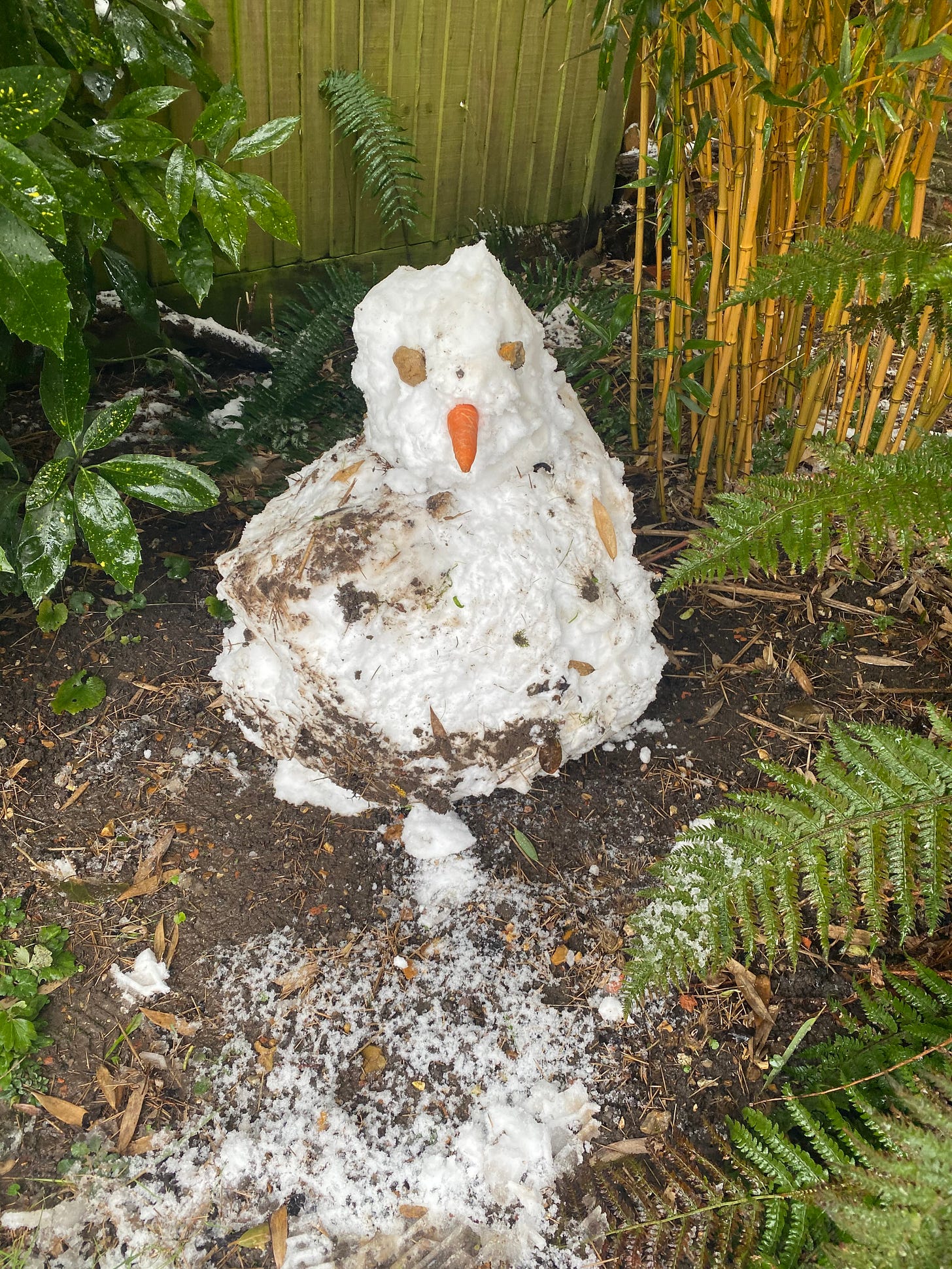 The kids were disappointed to the point of tears. Phoebe thought that she had missed snow at home. She loves snow. In spite of the cat shit snowman experience. Hear more about this on my upcoming tour!