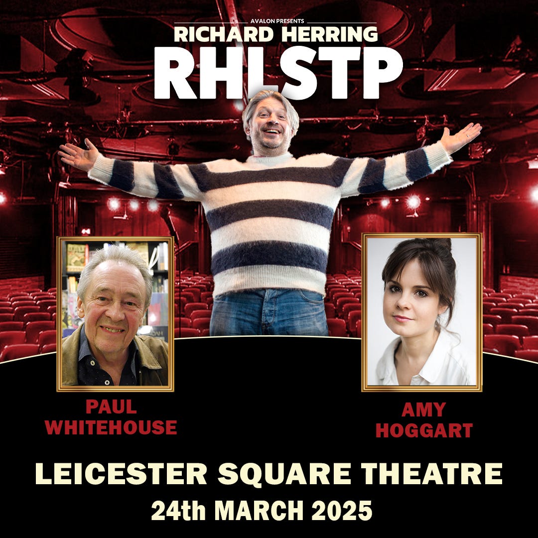 And all guests confirmed for the last two London Leicester Square Theatre RHLSTPs (ever?) There were a couple of tickets available for 24th last time I looked, and still a chance to buy £18.50 tickets for the 14th April with Tim Key and excellent US comedian Chloe Radcliffe. Book here.