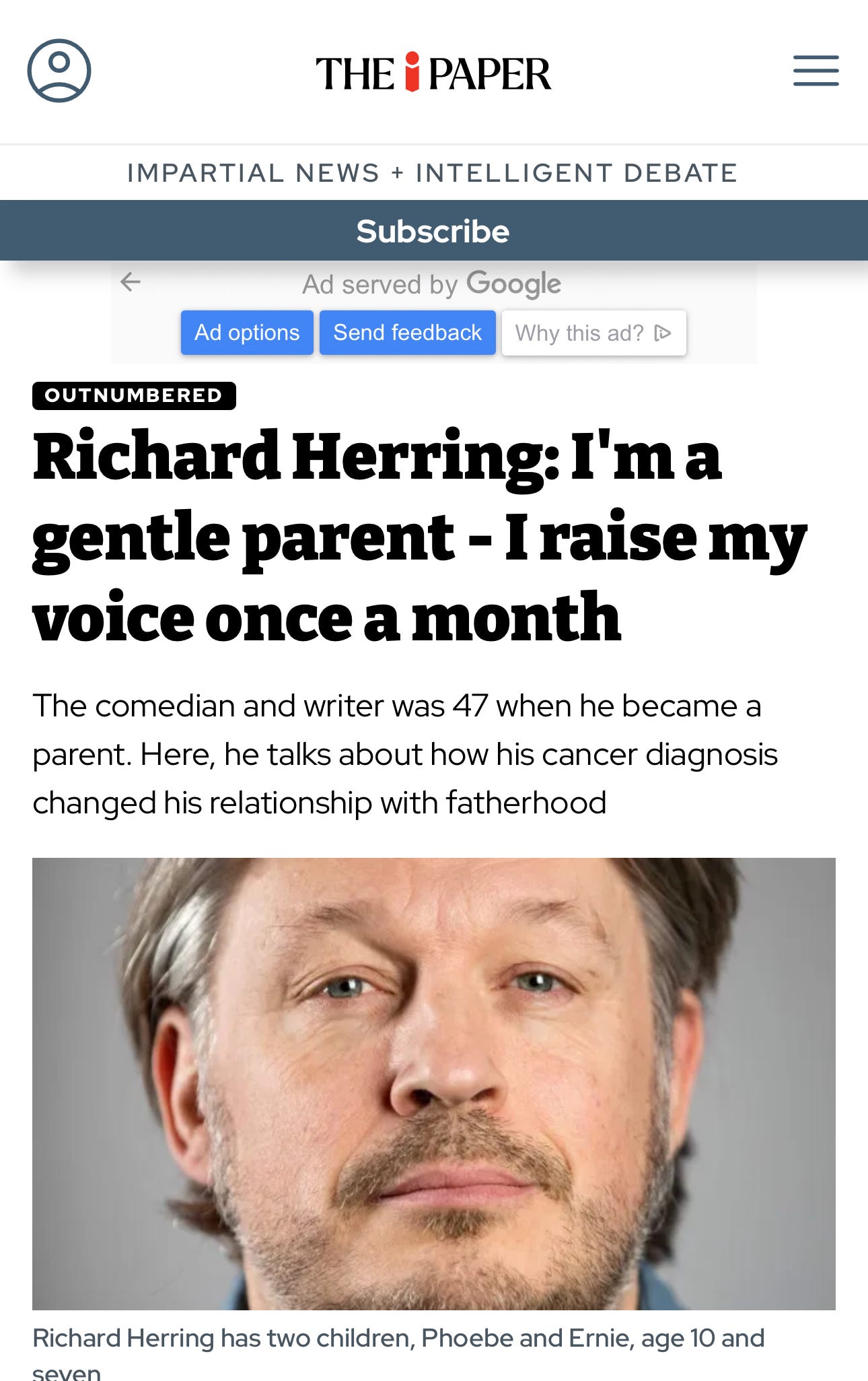 I think my kids (and wife) might dispute the idea that I only raise my voice once a month, but apart from that, a nice interview about parenthood on inews.