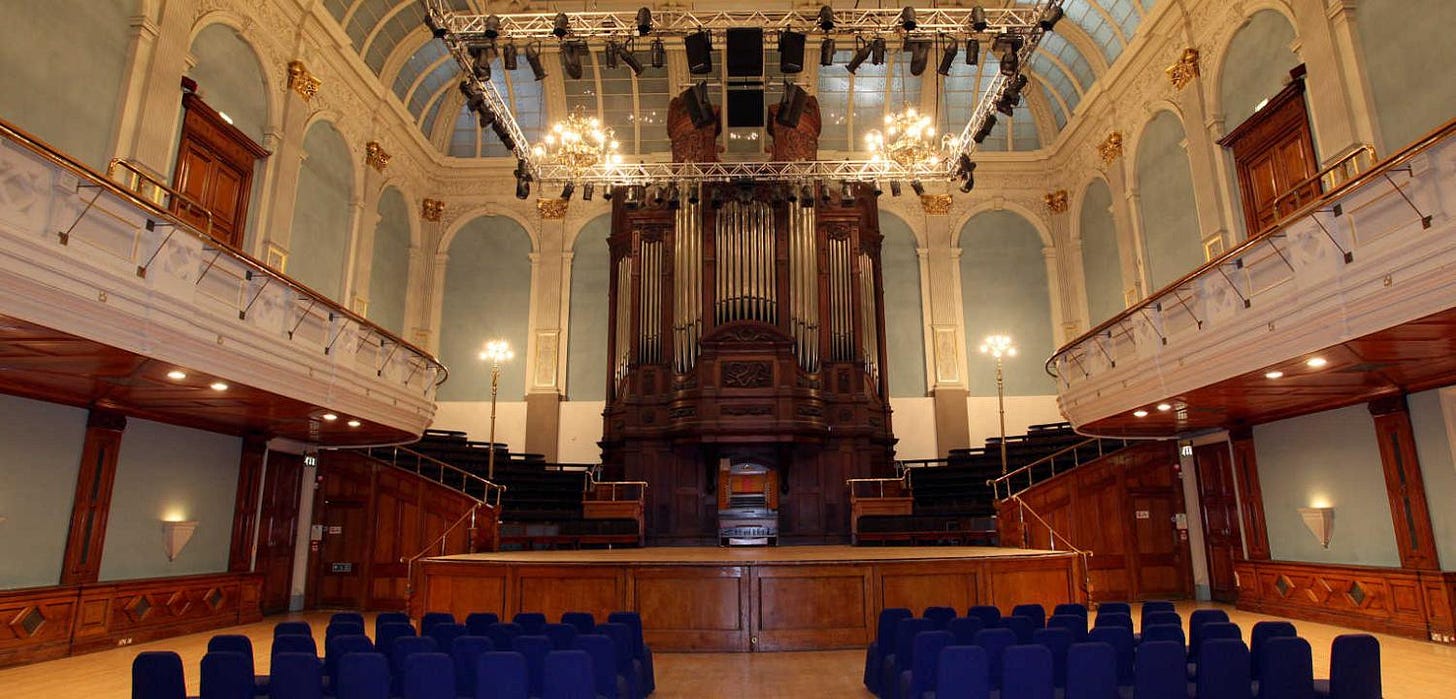 I have played self-playing snooker at the Hexagon and played all sizes of venue here. I loved the tiny South Street Arts, but now I have progressed up to maybe 40% filling the large Concert Hall (approaching 300 in tonight which is a great result for me). Great crowd, lots of fun and I didn't make a joke about the huge organ behind me. Mainly cos it was blocked by my screen. A couple of women in the merch queue said they'd been coming to see me since the Lee and Herring days. I didn't ask if they had once waited outside the Reading Hexagon for me to show up.