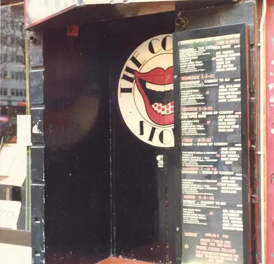 I don’t remember anything about being on stage there. I know one gig, maybe the first, went OK, as Kim Kinney who ran the place called me over to chat. He asked me if I was an actor and I said I wasn’t but wanted to be. I didn’t realise at the time, but this was actually a veiled insult. Back then it was tough to get an Equity card but if you could get a few comedy contracts under your belt you were allowed to apply, so some drama school people would do comedy. Kim clearly thought I was just a confident posh kid who’d learned some routines and performed them well. It’s true that I didn’t really want to be a stand up comedian at that point, so maybe there was something in his analysis. My act would sometimes go well and slightly more often go badly - my luck was bad and usually on a two night run the booker would see the bad one and not give me another gig. I wanted to do sketch comedy really and didn’t have a stand up persona. It was utterly terrifying and often humiliating and I wasn’t good enough yet, and still I stuck at it for more than a couple of years. In hindsight I admire my bravery and stupidity and resilience.